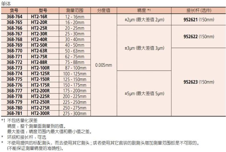 • 与钛涂层 Holtest 三爪式孔径千分尺型号的精度一样。