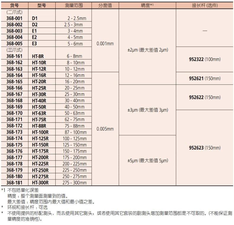 • 三爪孔径千分尺的钛涂层量爪具有良好的耐用性好和抗冲击性。仪器可直达盲孔底端量。• 三爪孔径千分尺适应于测量范围为 6mm 或者以上的类型。通过自动居中可稳定的测量。• 可贴近盲孔底端进行测量。接长杆 (选件) 可用于测量深孔,此功能适于6mm 以上型。• 装配的恒压装置,减少了因操作人员水平的不同而引起的偏差,从而可进行稳定的测量。• 环规 (选件) 可用于原点设置。