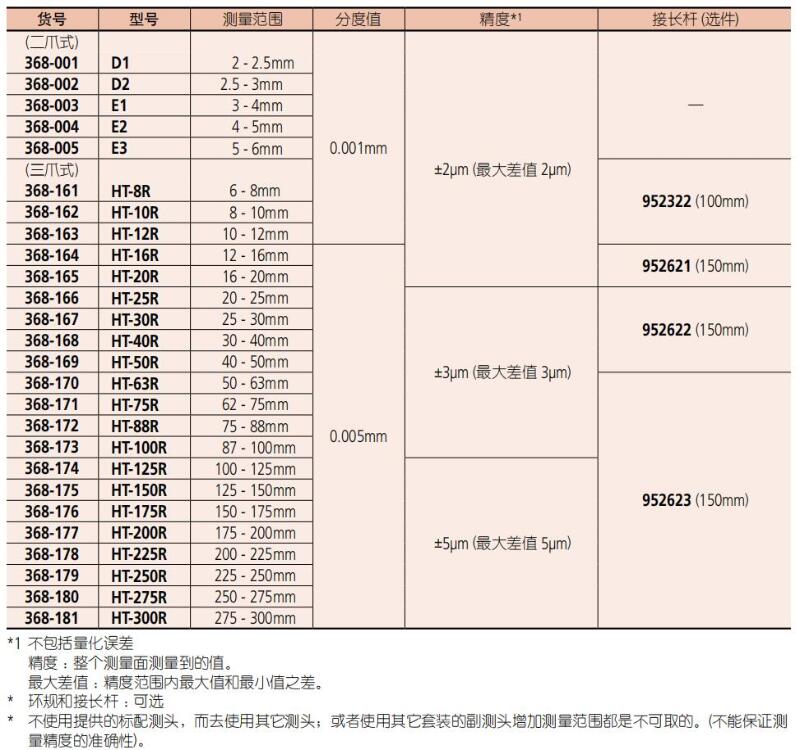 • 三爪孔径千分尺的钛涂层量爪具有良好的耐用性好和抗冲击性。仪器可直达盲孔底端量。• 三爪孔径千分尺适应于测量范围为 6mm 或者以上的类型。通过自动居中可稳定的测量。• 可贴近盲孔底端进行测量。接长杆 (选件) 可用于测量深孔,此功能适于6mm 以上型。• 装配的恒压装置,减少了因操作人员水平的不同而引起的偏差,从而可进行稳定的测量。• 环规 (选件) 可用于原点设置。