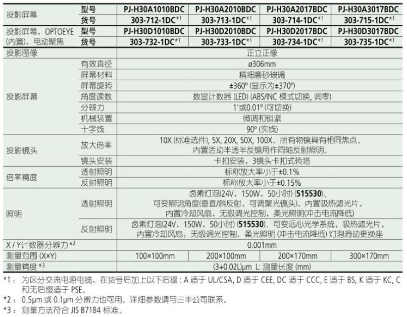 • ø306mm 屏幕能使正像更加清晰可见。• 使用具有等焦 3- 镜头卡扣式旋转盘。• 使用升降立柱机械结构。• XY 手柄内的快速释放控制能使工作台进给在粗调和微调之间切换。• 所有型号均为带光栅尺的高精度工作台。• 所有尺寸工作台在 X 和 Y 轴方向均可实现( 3+0.02L ) µm 的高测量精度。• 高精度寻边器 ( OPTOEYE ) 的型号。• 测量范围 ( 300 × 170mm ) ,为同类产品中最大。