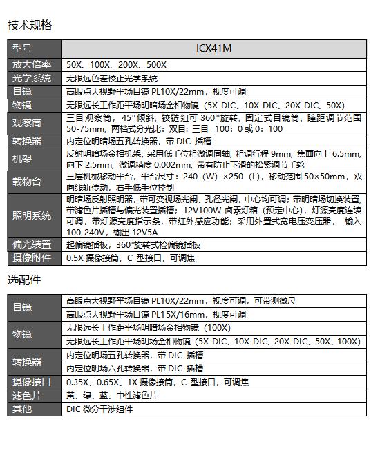 全新设计的无限远光学系统,人机工程学可 360°旋转式双目观察筒,低手位操作模式。广泛用于铸造、冶炼、热处理的研究,原材料的检验或材料处理分析等多种检测领域