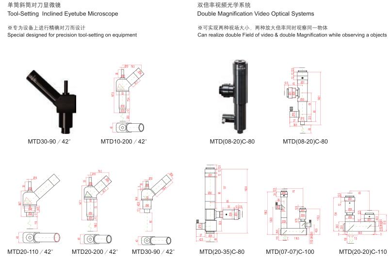 ● 包括单倍率视频光学系统,单筒斜筒对刀显微镜,双倍率视频光学系统, MTDP无穷远镜头单筒视频光学系统等四大系列