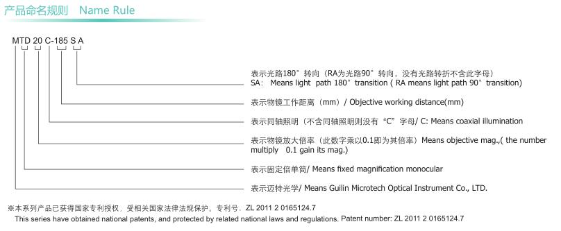 ● 有不同放大倍率、各种工作距离、同轴照明、光路90°,180°转折、双倍率等近二百种规格型号