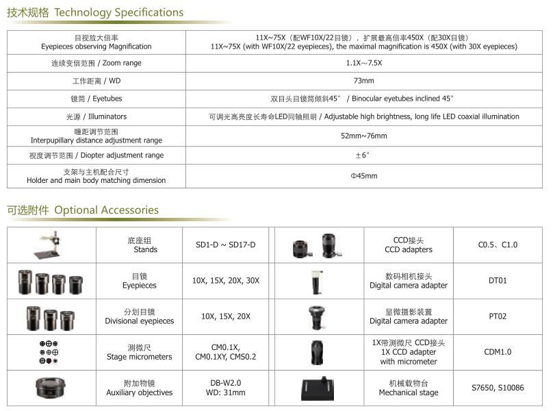 ● 独创的成像和照明光学系统设计,使它有更好的对比度和景深